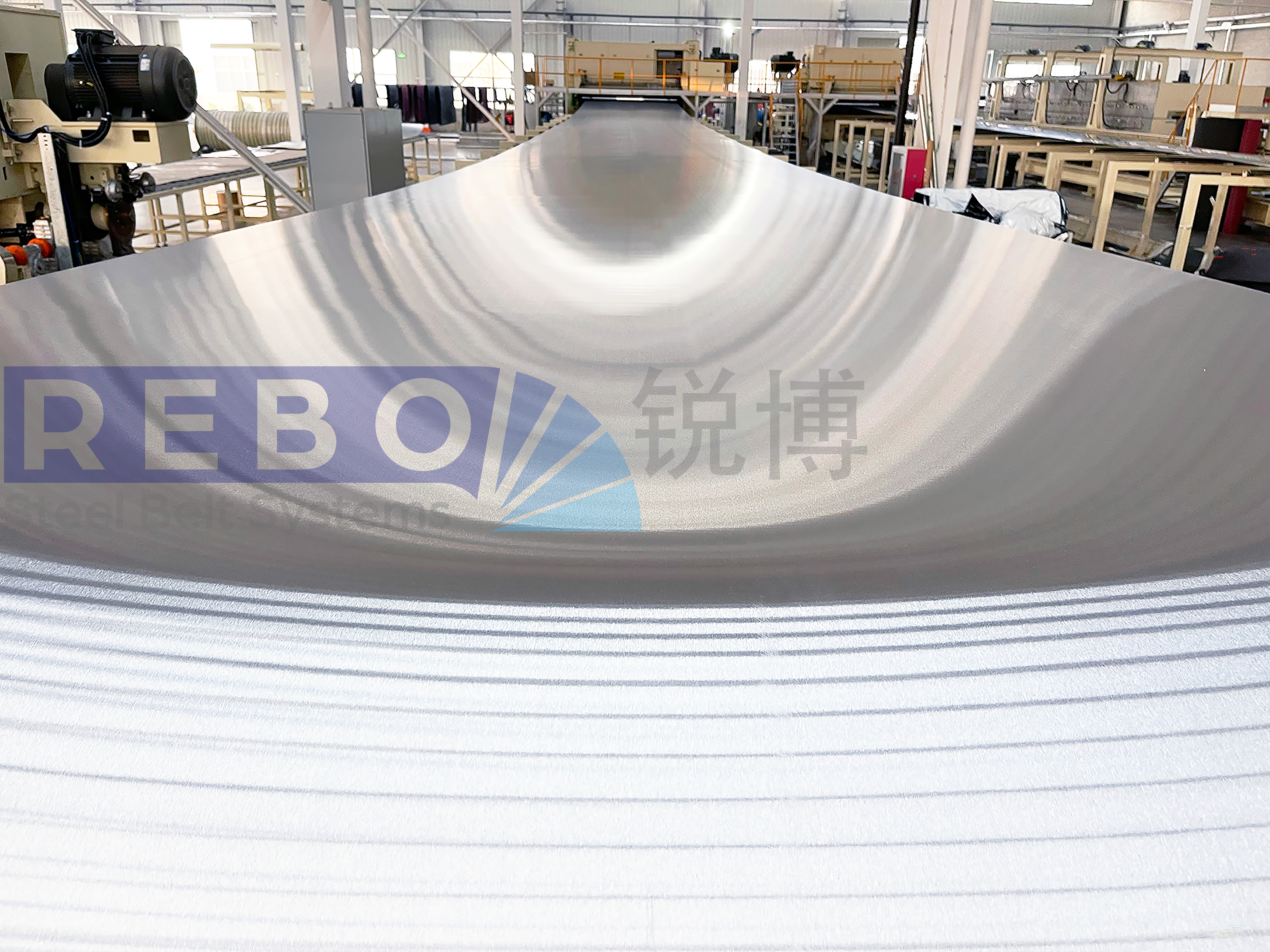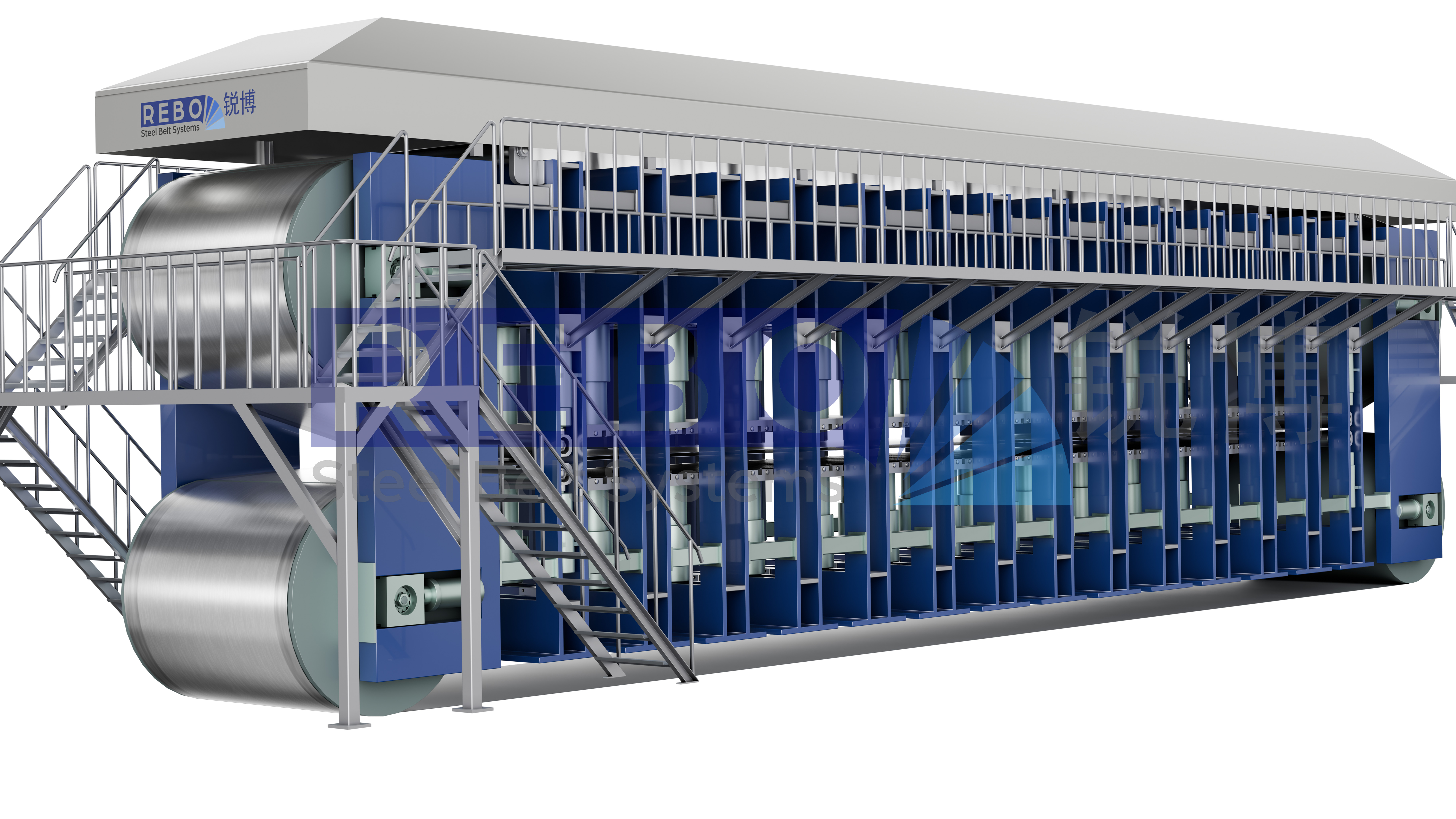 傳遞壓力:鋼帶作為壓制工具,能夠均勻地將壓力傳遞給人造板坯料,確保板材在壓制過(guò)程中受力均勻,避免產(chǎn)生凹凸不平的情況。